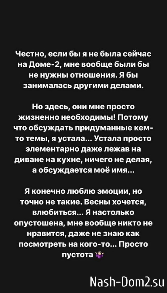 Александра Черно поведала, что опустошена и ей вообще никто не нравится.