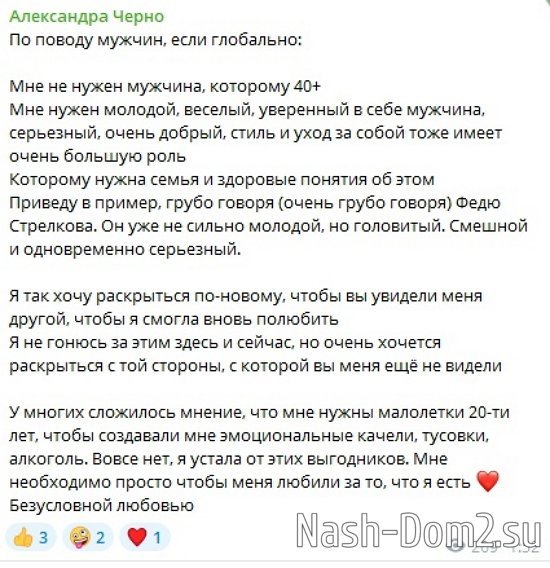 Александра Черно поведала, что ей не нужен мужчина старше 40 лет.