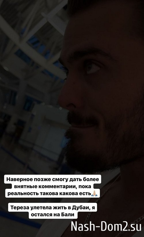 Алексей Купин сообщил о том, что его бывшая девушка Тереза Мур улетела в Дубай.