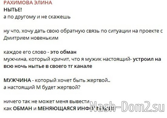 Элина Рахимова: Устроил на всю ночь нытьё!