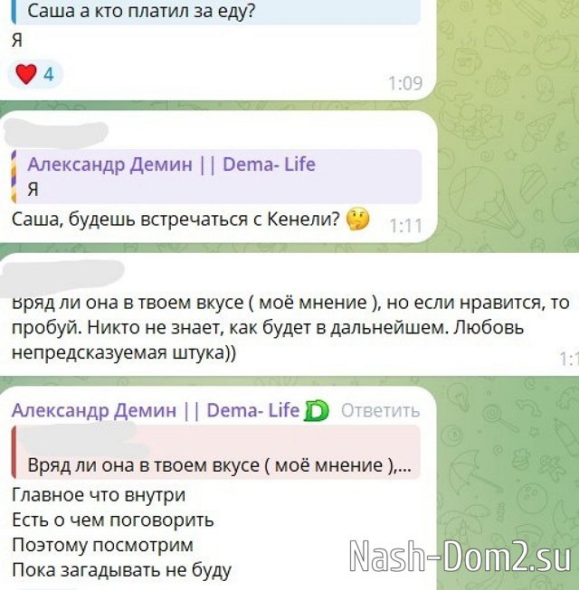 Лиза расстроена и отправилась к маме в Тюмень, чтобы подождать вестей от руководства. Стоит напомнить, ранее Субботина говорила о том, что покинет реалити-шоу, если там будет Дёмин. Кенели убеждена в том, что Лиза не помешает им с Александром создать пару на «Доме-2». Но как быть с Гох и Марданшиным, которые тоже не поддержат возвращение Дёмина на проект?