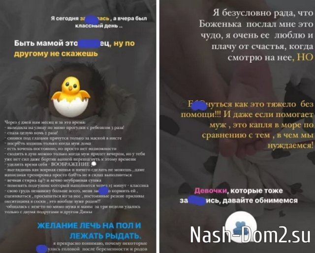 Дмитрий Васильев и Виктория Бахарева несколько дней назад стали родителями дочки. Стало известно, что для молодой мамы уход за ребёнком стал непростым испытанием. Она жалуется подписчицам на нехватку времени для себя, на усталость и плохое настроение.